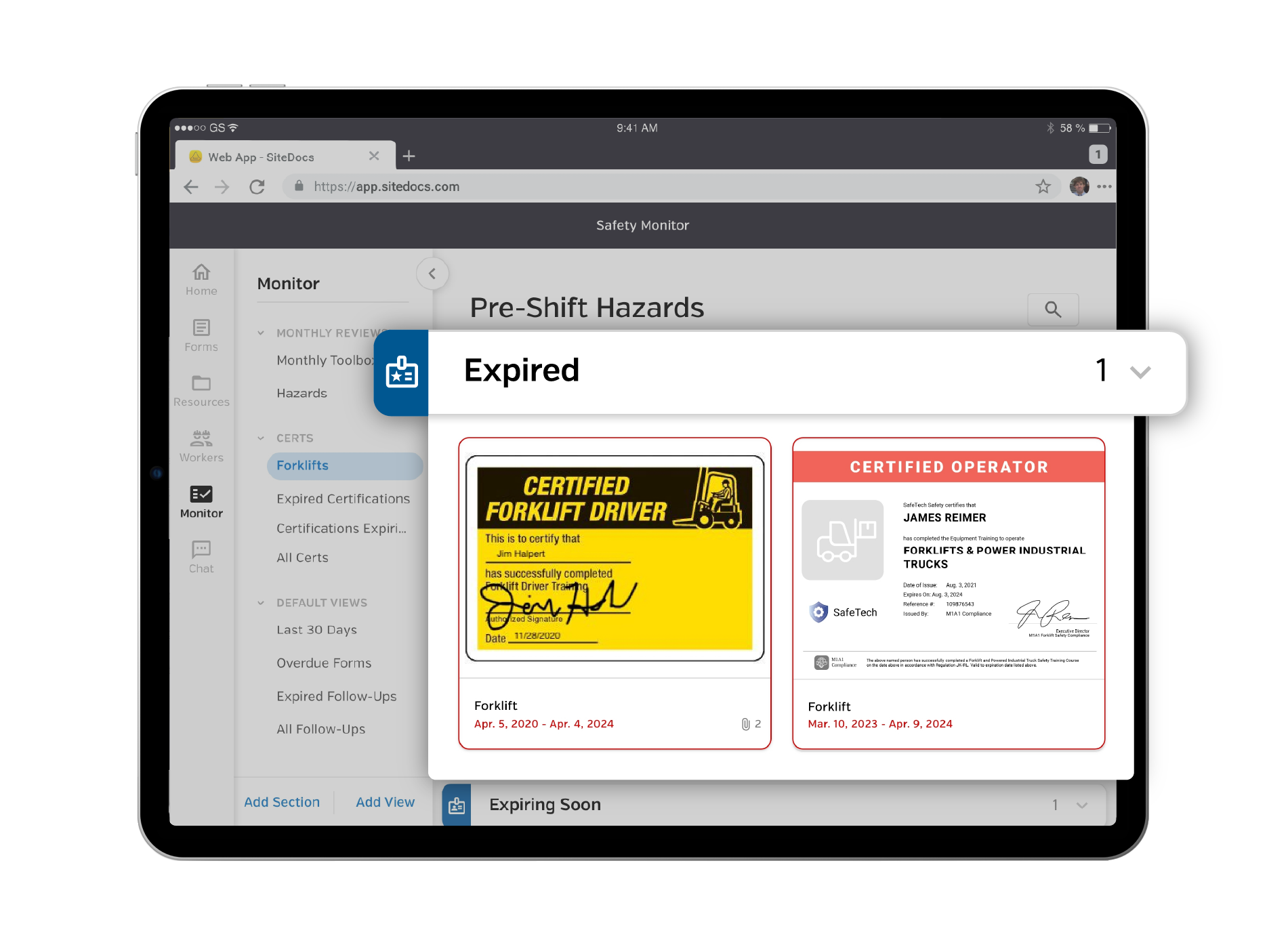 Easily create, update, and check that certifications and training are up-to-date for every contractor on site. Automatic reminders ensure credentials are on file and recertifications never get missed.