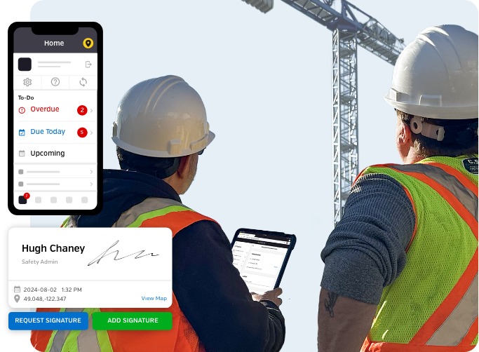 Eliminate worker confusion with location or project-specific forms and safety resources. Show them only what they need to see. Each morning workers can see overdue items and any upcoming items assigned to them. Simple.