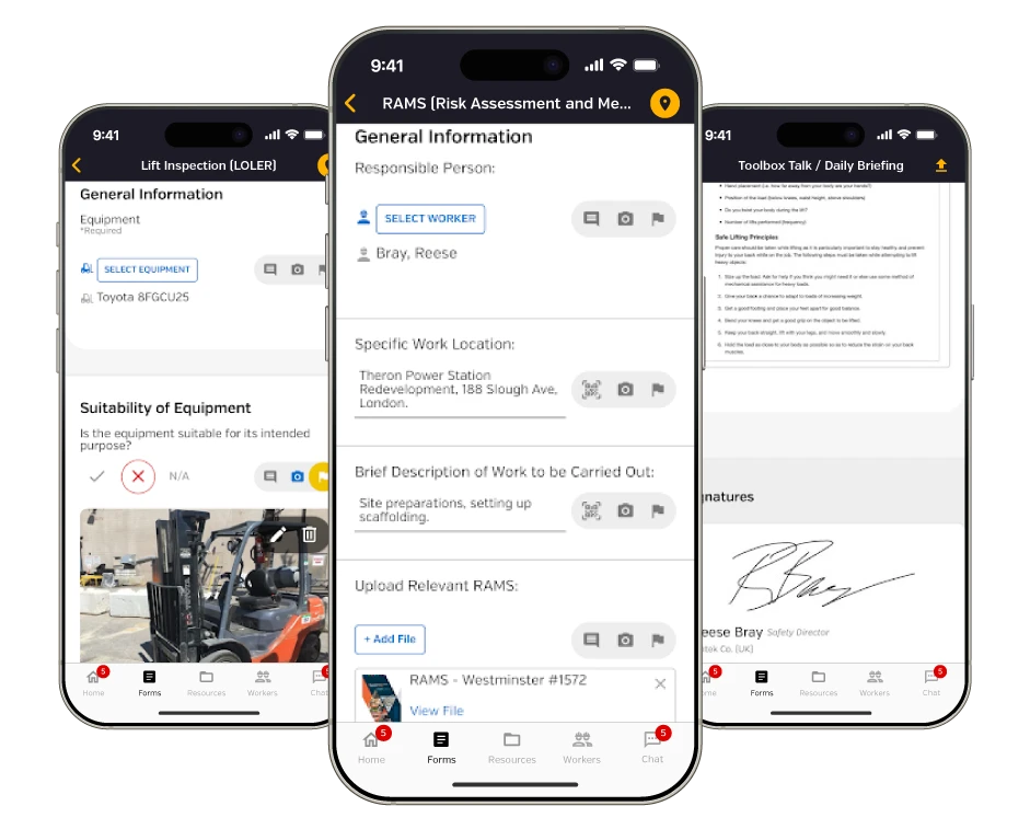 Out-of-the-box workflows for UK safety documentation, inspections, RAMS, and more — all in one platform.