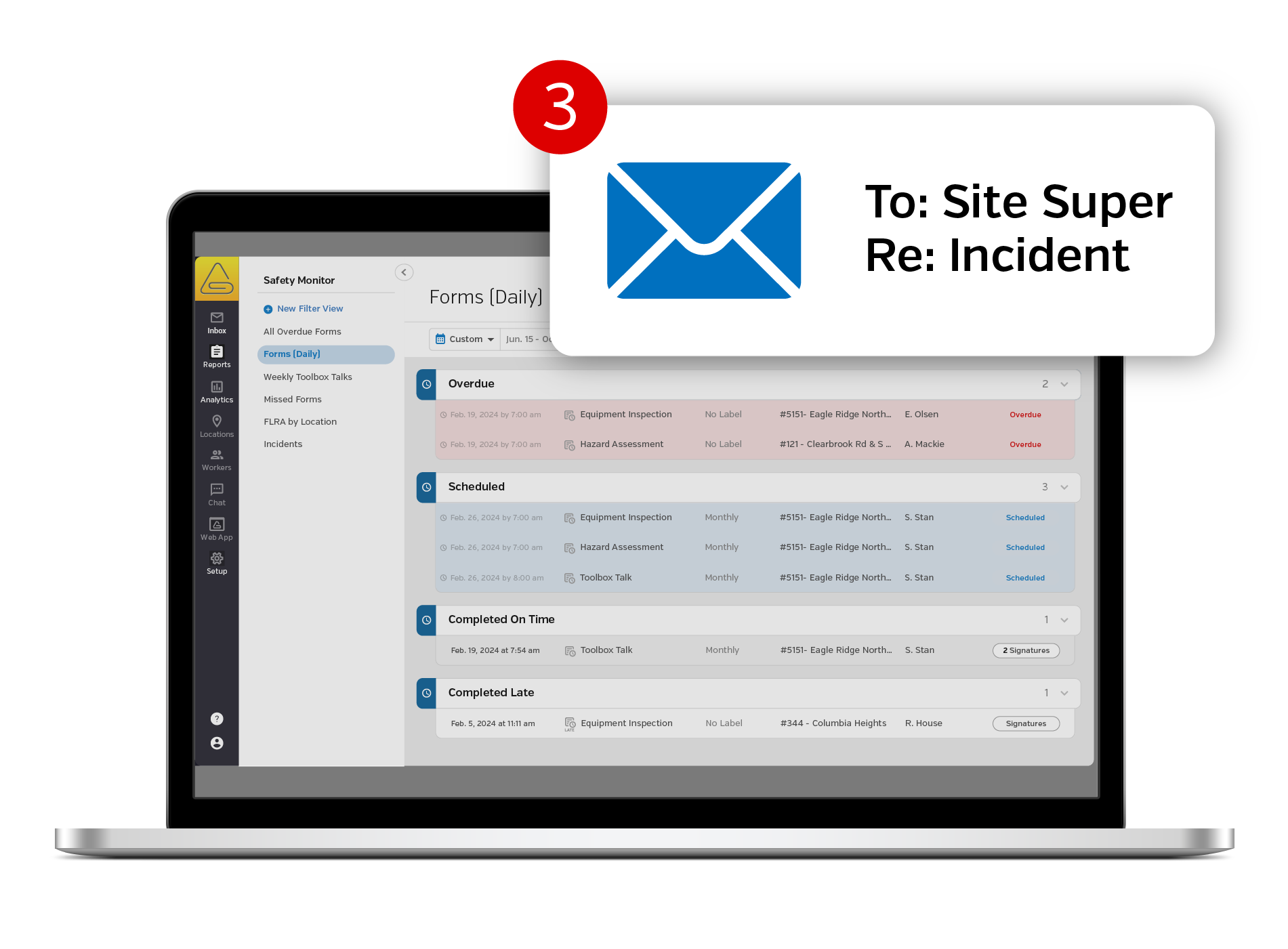 In the event of an incident on site, get notified immediately. Easily communicate directly with workers through In-App Chat so you can stay informed when it matters most.