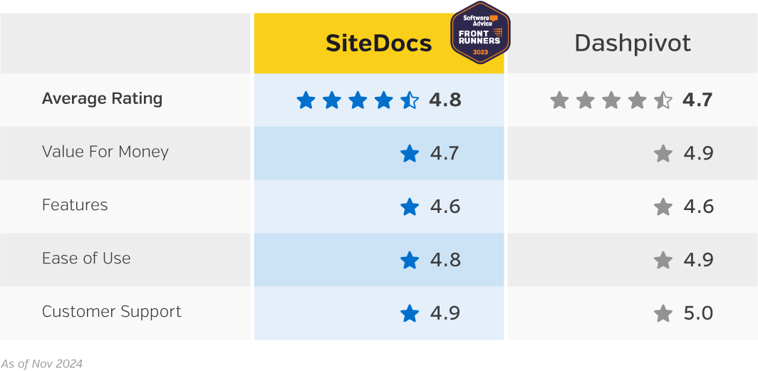 SiteDocs vs Dashpivot on Capterra